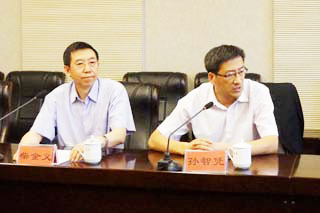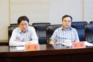 | 內蒙古大學交通學院黨委書記孫智憑(右)、院長柴金義 | 中遠集團技術中心副主任羅虎(左)、研發(fā)部經(jīng)理汪洋(右) |