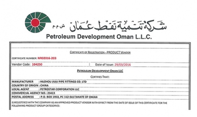 近日,久立管件被正式授予“阿曼石油開發(fā)公司(以下簡稱PDO)批準(zhǔn)供應(yīng)商證書”,批準(zhǔn)包括了奧氏體不銹鋼、雙相鋼,超級雙相鋼和鎳基合金等材質(zhì)無縫和焊接管件,