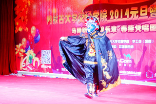 舞蹈《萬馬奔騰》拉開了晚會(huì)序幕。晚會(huì)分為三個(gè)篇章,以歌曲《紅紅的日子》、舞蹈《青花瓷》、小品《一條短信》、舞臺(tái)表演《變臉》表達(dá)第一篇章“辭舊攀高峰,馬年鑄輝煌”的風(fēng)韻;以歌曲《我的故鄉(xiāng)》、小品《女人的N次方》、歌曲串燒《飛得更高+明天更美好》、朗誦《青蔥歲月》、舞蹈《落花情》表現(xiàn)第二篇章“承斑斕夢想,綻青春華采”的活力;以舞蹈《最后的A—one》、小品《白蛇傳》、手語表演《我們?cè)谝黄稹?、舞臺(tái)表演《魔術(shù)》展現(xiàn)第三篇章“青春無限量,夢想無極限”的激情。眾多優(yōu)秀節(jié)目既體現(xiàn)了濃濃的新年喜悅,又表達(dá)了即將畢業(yè)的同學(xué)對(duì)母校的不舍,兩個(gè)多小時(shí)的晚會(huì)始終洋溢著青春澎湃、熱烈祥和的氛圍。晚會(huì)中還穿插了抽獎(jiǎng)活動(dòng),讓晚會(huì)高潮迭起,精彩紛呈。