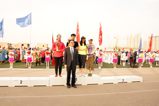 與會領(lǐng)導(dǎo)為獲得學(xué)生女子團體前六名的單位頒獎 |