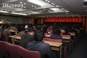 為貫徹落實(shí)中央民族工作會(huì)議精神及自治區(qū)民族工作部署要求,使我校廣大領(lǐng)導(dǎo)干部更好地了解民族工作的重大意義,增強(qiáng)貫徹落實(shí)的思想自覺(jué),2014年10月21日下午,在學(xué)術(shù)會(huì)議中心8號(hào)會(huì)議室,學(xué)校黨委召開(kāi)中心組(擴(kuò)大)學(xué)習(xí)會(huì)議,邀請(qǐng)我校公共管理學(xué)院政治理論教研部副教授趙麗華作關(guān)于學(xué)習(xí)中央民族工作會(huì)議精神的專(zhuān)題輔導(dǎo)講座。