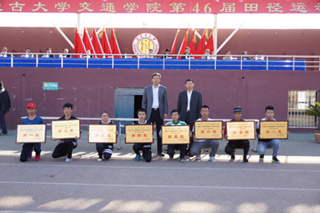 柴金義院長致運(yùn)動(dòng)會(huì)閉幕詞。首先他代表學(xué)院黨政領(lǐng)導(dǎo)向取得優(yōu)異成績的運(yùn)動(dòng)員表示祝賀,向?yàn)楸緦眠\(yùn)動(dòng)會(huì)付出辛勤勞動(dòng)的裁判員、各位工作人員表示衷心的感謝。他指出,本屆運(yùn)動(dòng)會(huì)在內(nèi)蒙古大學(xué)第42屆田徑運(yùn)動(dòng)會(huì)之后舉行,是在學(xué)習(xí)、總結(jié)、分享經(jīng)驗(yàn)和成績的基礎(chǔ)上,學(xué)院積極推進(jìn)體育運(yùn)動(dòng)的一項(xiàng)具體舉措,也是進(jìn)一步豐富校園生活、加強(qiáng)體育文化建設(shè)的一項(xiàng)重要活動(dòng)。通過舉辦運(yùn)動(dòng)會(huì),發(fā)現(xiàn)、培養(yǎng)學(xué)生的興趣愛好、優(yōu)勢特長、樹立自信,為師生創(chuàng)造一個(gè)展現(xiàn)自我、超越自我的平臺。為期兩天的運(yùn)動(dòng)會(huì)充分展現(xiàn)了全院師生自強(qiáng)不息、頑強(qiáng)拼搏、超越自我、團(tuán)結(jié)協(xié)作、文明友愛的精神風(fēng)貌。柴院長結(jié)合學(xué)院2014年學(xué)科專業(yè)建設(shè)、綜合實(shí)力提升項(xiàng)目取得的成果指出,2015年是交通學(xué)院總結(jié)十二五建設(shè)發(fā)展成績重要一年,更是學(xué)院謀劃十三五發(fā)展關(guān)鍵一年,他希望學(xué)院全體師生要繼續(xù)關(guān)心學(xué)院發(fā)展和建設(shè),把本次運(yùn)動(dòng)會(huì)表現(xiàn)出的團(tuán)結(jié)協(xié)作、拼搏進(jìn)取的精神風(fēng)貌貫穿學(xué)院各項(xiàng)工作和校園生活中,共同為學(xué)院發(fā)展作出應(yīng)有的貢獻(xiàn)。