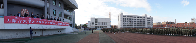 9月11日上午,內(nèi)蒙古大學(xué)2015級(jí)新生軍訓(xùn)匯報(bào)表演在北校區(qū)操場隆重舉行。我院黨委書記孫智憑、院長柴金義出席并在主席臺(tái)就坐。