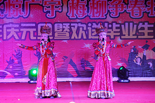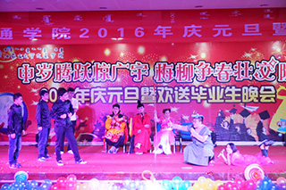 柴金義院長致新年賀詞 領(lǐng)導(dǎo)與晚會(huì)演職人員合影 左為常務(wù)副院長董平,右為副院長武鈞 右為黨委副書記、紀(jì)委書記白托婭,左為黨委委員趙志蒙 開場舞《蒙古族舞蹈:賽白努》 晚會(huì)主持人 部門領(lǐng)導(dǎo)、系部領(lǐng)導(dǎo)及學(xué)工辦主任、班主任 教師們傾情表演《歌曲串燒》 歌伴舞表演《曹操》 魔術(shù)表演 歌曲《站在草原望北京》 歌曲《漫步人生路之夜來香》 舞蹈《up down & shake it》 朗誦《不悔夢歸處 只恨太匆匆》 小品《我是演員》 相聲《我要畢業(yè)了》 動(dòng)感街舞表演 舞蹈《青春的告白》