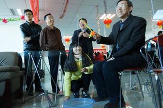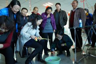 活動(dòng)現(xiàn)場(chǎng)張燈結(jié)彩,一片歡聲笑語。金鉤釣魚、好運(yùn)飛鏢、幸福圈套、隔桌吹蠟、快樂乒乓夾、蒙眼摸鼻等六個(gè)貼近生活、充滿趣味的游藝項(xiàng)目,給廣大教職工奉獻(xiàn)了一頓豐富多彩的娛樂大餐。游藝中,有比技巧的,有比準(zhǔn)勁的,有比運(yùn)氣的……大家個(gè)個(gè)勁頭十足,一改往日的嚴(yán)謹(jǐn),沉醉在游戲帶來的樂趣之中,盡情釋放著平日工作的壓力,盡情享受著游戲活動(dòng)帶來的快樂,一年以來教書育人的辛勞在這一刻全部隨著2015年蕩滌而去,新一年熱火朝天的干勁油然而生。