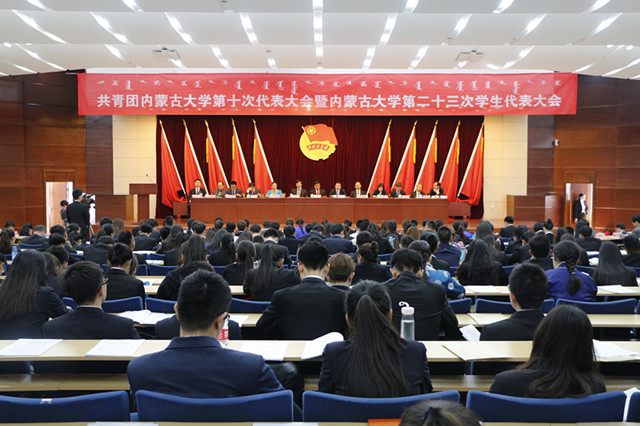 4月16日上午9時,共青團內(nèi)蒙古大學(xué)第十次代表大會暨內(nèi)蒙古大學(xué)第二十三次學(xué)生代表大會在內(nèi)蒙古大學(xué)學(xué)術(shù)會議中心九號會議室隆重開幕。黨委副書記、校長陳國慶,黨委副書記李延俊,副校長張吉維,自治區(qū)團委學(xué)校部部長、自治區(qū)學(xué)聯(lián)秘書長齊斯琴,自治區(qū)學(xué)聯(lián)主席、校學(xué)生會主席伊日桂出席了開幕式。學(xué)校有關(guān)職能部門領(lǐng)導(dǎo)、各學(xué)院黨總支書記、部分老團干、特邀代表以及團代會代表、學(xué)代會代表共計450人參加了開幕式。