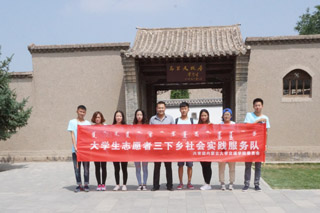 參加“三下鄉(xiāng)”社會(huì)實(shí)踐活動(dòng)的學(xué)院大學(xué)生志愿者在烏蘭夫故居前合影 | |