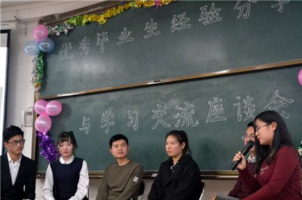座談會分為經(jīng)驗分享、學習交流、暢想未來三個環(huán)節(jié)。已被保送到北京交通大學的李奉孝同學圍繞“ 我想做,我去做,我能做”,讓同學們明確自己應該如何充實的度過大學時光;同樣被保送至北京交通大學的蘇宏明同學分享了自己從班級第十六名到第四名并成功保研的經(jīng)歷,他用發(fā)生在自己身上的故事告訴同學們現(xiàn)在多吃學習的苦,以后就能少吃生活的苦;已經(jīng)簽約伊利集團總部的洪國慶同學的實習經(jīng)歷和工作經(jīng)驗讓同學們知道如何找到自己稱心的工作;曾獲得“國家勵志獎學金”“內(nèi)蒙古自治區(qū)高校三好學生”等榮譽稱號的張亞琦同學用自己的實際行動證明腳踏實地才能收獲成功。